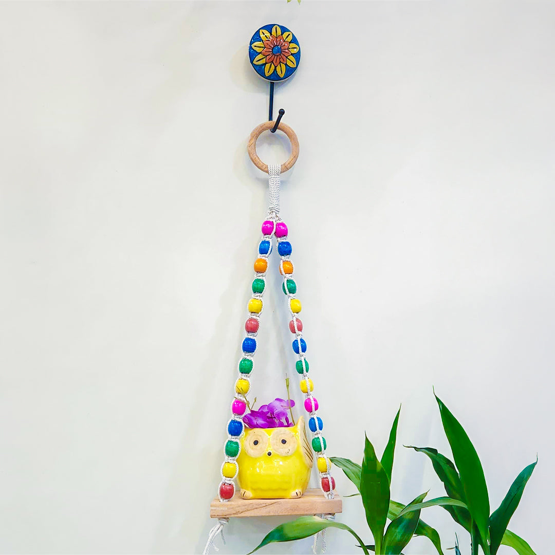 Add a touch of charm to your space with our beautifully crafted wooden wall shelves, accented with vibrant wooden beads-perfect for displaying plants and more!. Bring warmth, color, and a little whimsy to your home with this handcrafted beauty!