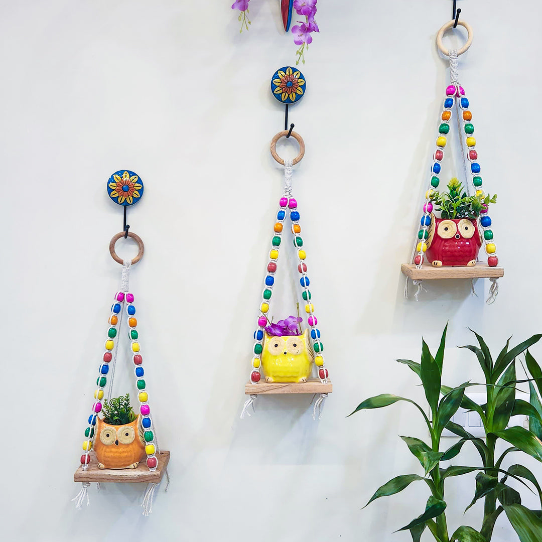 Add a touch of charm to your space with our beautifully crafted wooden wall shelves, accented with vibrant wooden beads-perfect for displaying plants and more!. Bring warmth, color, and a little whimsy to your home with this handcrafted beauty!