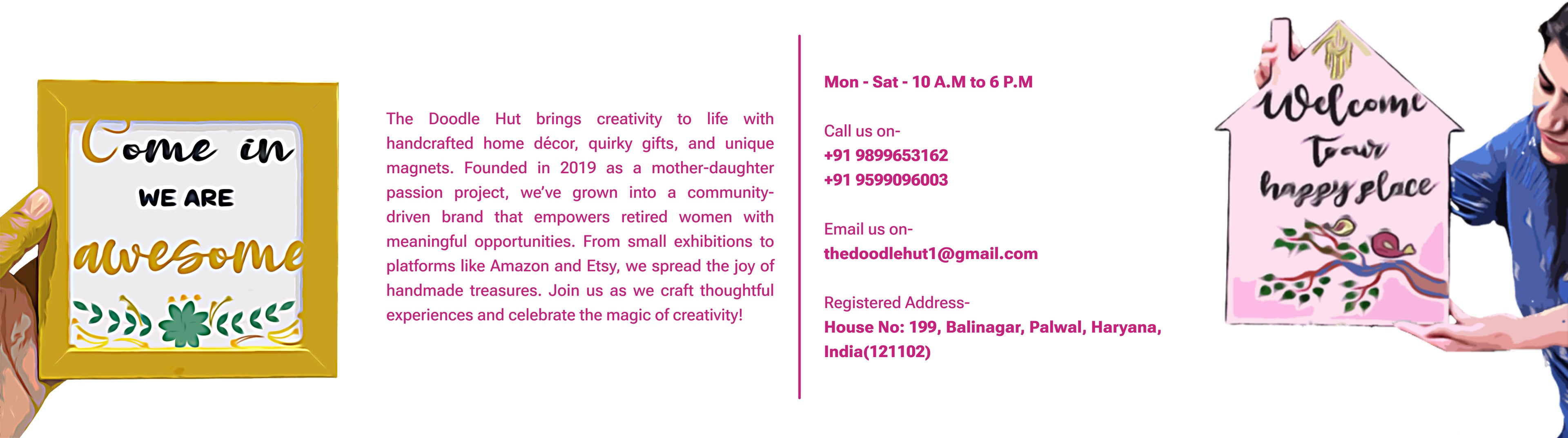 For any issues or order-related queries, feel free to reach out! Email us at thedoodlehut1@gmail.com or call us at +91-9899653162, +91-9599096003—we’re here to help!