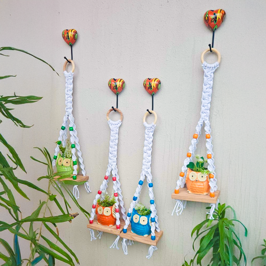 Enhance your home decor with our exquisite macrame shelf. This handcrafted masterpiece showcases an intricate macrame pattern, symbolizing the vibrant beauty of life through its array of colors. Making it ideal for showcasing plants or your favorite decorative pieces.